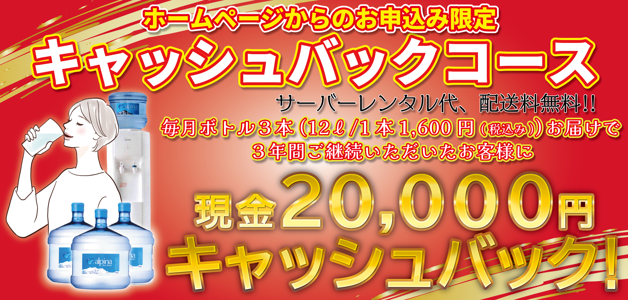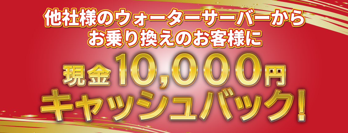 こちらのコースをご契約の際に、他社のウォーターサーバーからの乗り換えの場合は、ご契約時に「¥10,000キャッシュバック※2」いたします!!